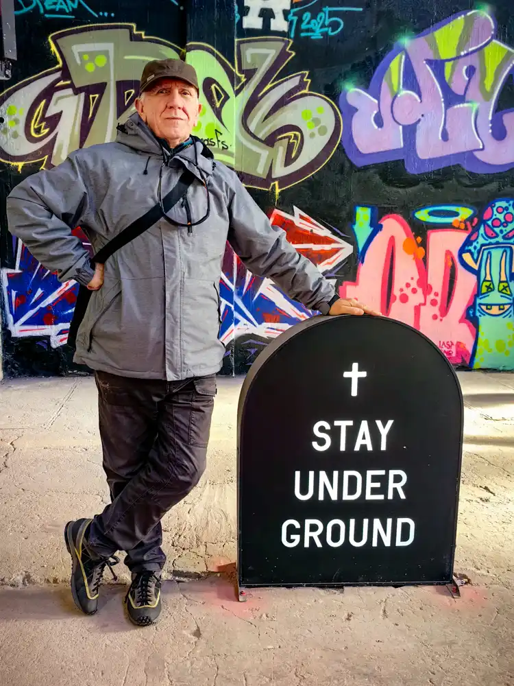 Or how a conservative senior might find steam rising from his loafers upon entering spaces where youth refuses to stay silent. After a coffee in the nearly empty contemporary art gallery NOMUS, we found ourselves in the shipyard docks by evening, amidst bridge graffiti, on Elektryków Street, and within the 100cznia complex. Johny’s notions of “conservative values and normalcy” crumbled like an axe in a cyberpunk forge.