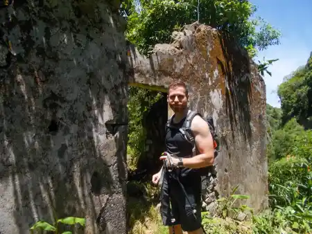 Above it towers an incredibly high bridge. When we came to the ruins of the stone mill, which was swallowed by the “jungle”, I felt like Indiana Jones.